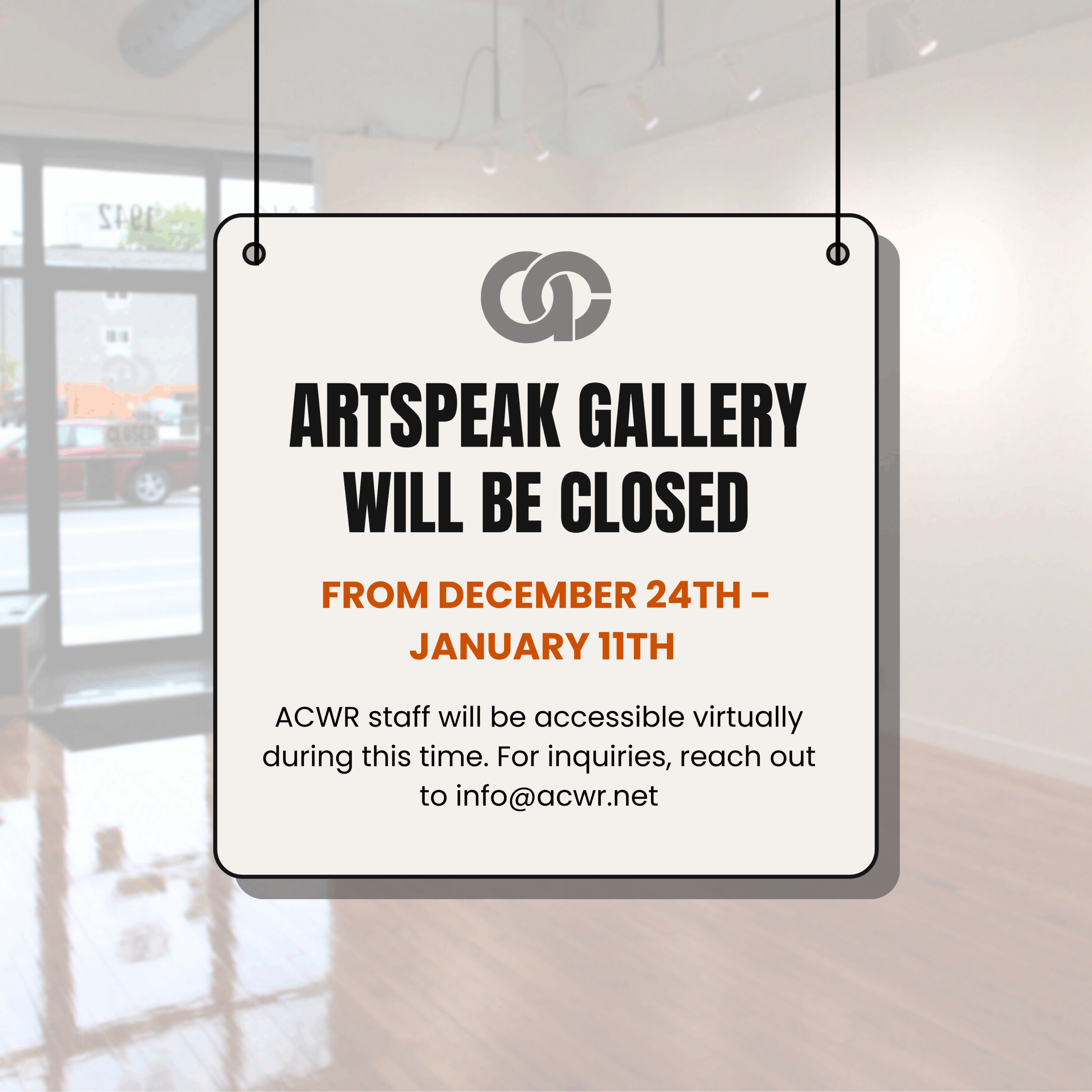 ArtSpeak Gallery Closed for Winter Break December 24, 2025 - January 11, 2026 Creative Wellness Night | Vanguard Arts & Wellness January 22, 2026 @ 6:00 pm - 8:00 pm Windsor & Region Arts Events Upcoming at the ACWR At ArtSpeak Gallery The ACWR office is currently open during the following hours: M: Closed T: 1-5pm W: 1-7pm Th: 1-5pm F: 1-5pm Sign Up for the Arts Notes! Receive a weekly newsletter that keeps you up to date on all arts events and opportunities in Windsor-Essex. Sign Up
