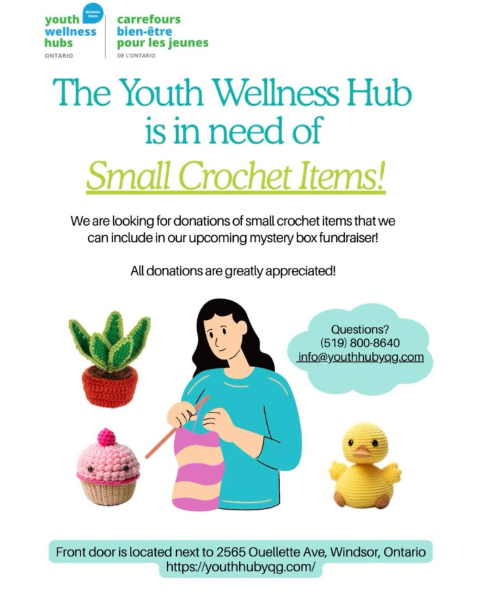 The Youth Wellness Hub of Windsor-Essex is looking for Donations of Small Crochet Items for their Mystery Box…