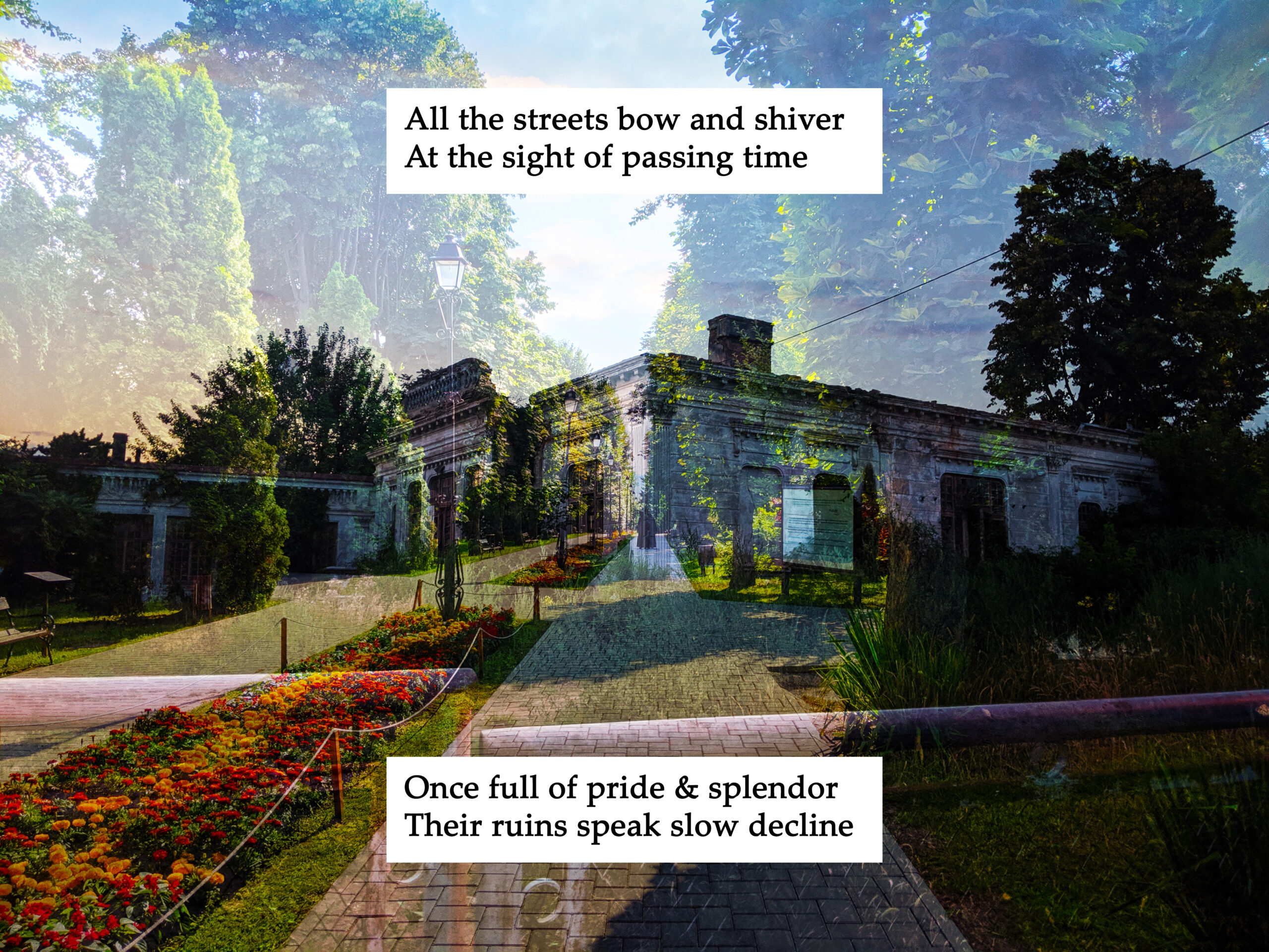 Alex-Andrei “Alexei” Ungurenaşu writes from the perspective of an outsider-become-insider. As a Romanian-Canadian artist living in Windsor, ON, they craft poems, zines, paintings, and collages summoning the various places where they lived and visited. Writing started as a hobby for Alexei, and it eventually led to them becoming Windsor’s youth poet laureate for 2021-23. Alexei draws much inspiration from their studies in literature and philosophy, with existentialism and romanticism serving as direct influences. In their poems, Alexei uses words to bridge the distance – be it physical, emotional, or temporal – between themselves and the places, people, and moments that they miss. When they aren’t reading or writing, Alexei seeks ways of staying involved in the local arts community. They are a member of the Vanguard Youth Arts Collective, and they often run events with the Art Gallery of Windsor and the University of Windsor’s Humanities Research Group.
