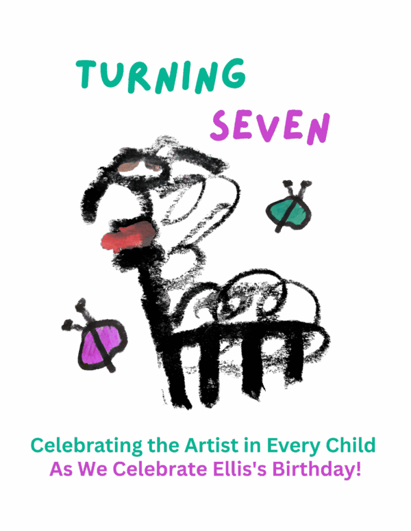 The Turning Seven exhibition shares several works of a young child experimenting with various mediums in carefree creativity, unhindered by abstract concepts such as ‘perfection’, ‘practicality’, or ‘marketability.’ Through these works, we can appreciate — and perhaps recall our own — unabashed pursuit of creation explicitly to satisfy personal inspiration. This collection of doodles, paintings, and collages, many gleefully applied to folded and torn scrap paper, invites the viewer to cast off expectations and JUST CREATE!
