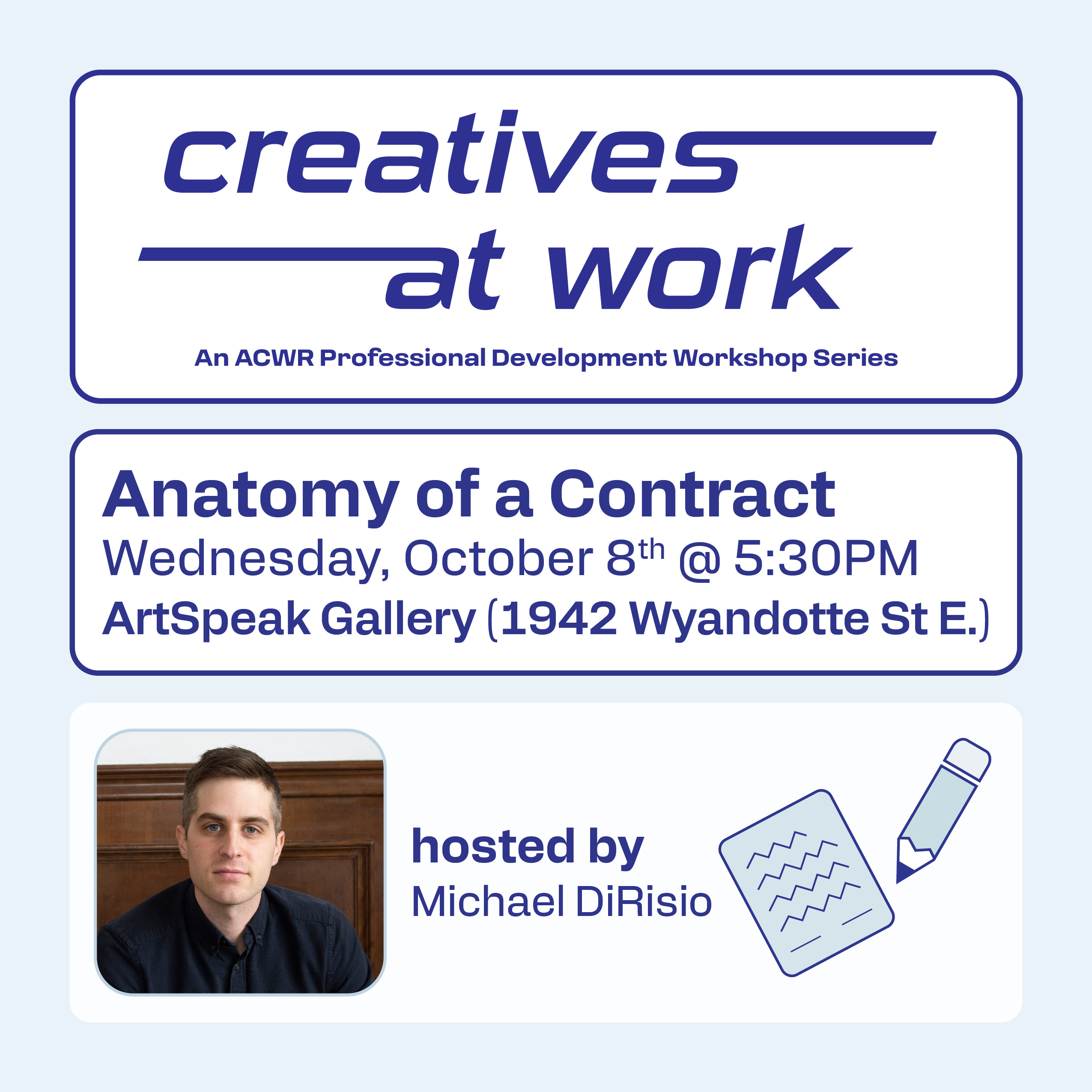 Join us on October 8th for a contract writing and reviewing workshop with Michael Di Risio. Together, we...